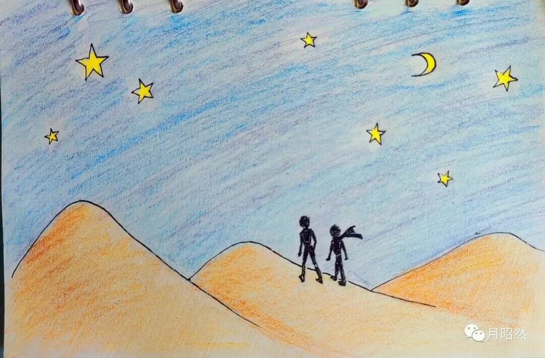 “夜里,你就抬头看看星星吧。我住的星星太小了,以至于我不能给你指出我的星星在哪里。这样更好。对你而言,我的星星是那些星星当中的一颗,你会因此爱看天空中所有的星星……它们都将成为你的朋友。而且,我要送你一件礼物……”